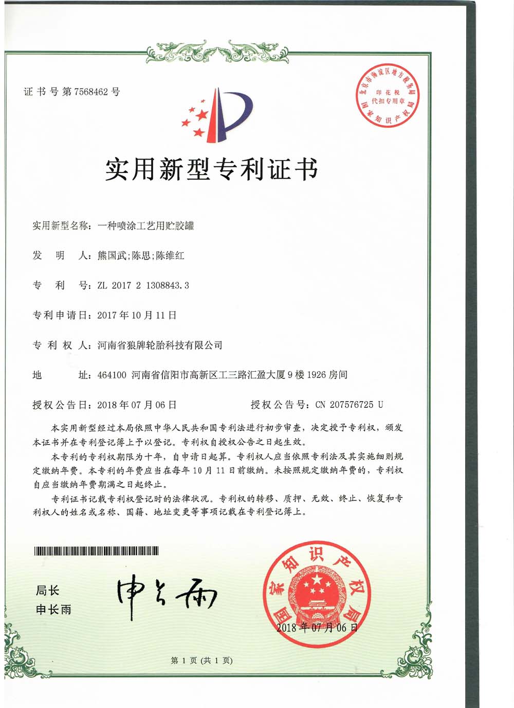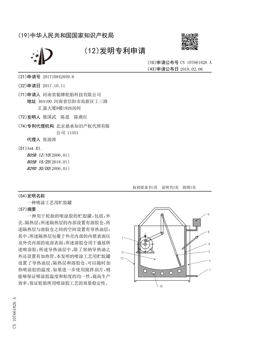 中橡狼牌輪胎發(fā)明專利、實(shí)用新型專利及外觀設(shè)計專利
