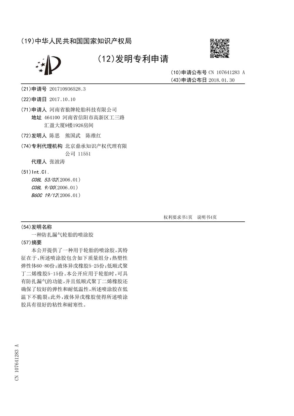 中橡狼牌輪胎發(fā)明專利、實(shí)用新型專利及外觀設(shè)計專利