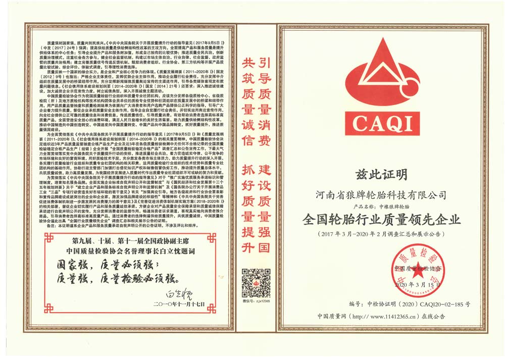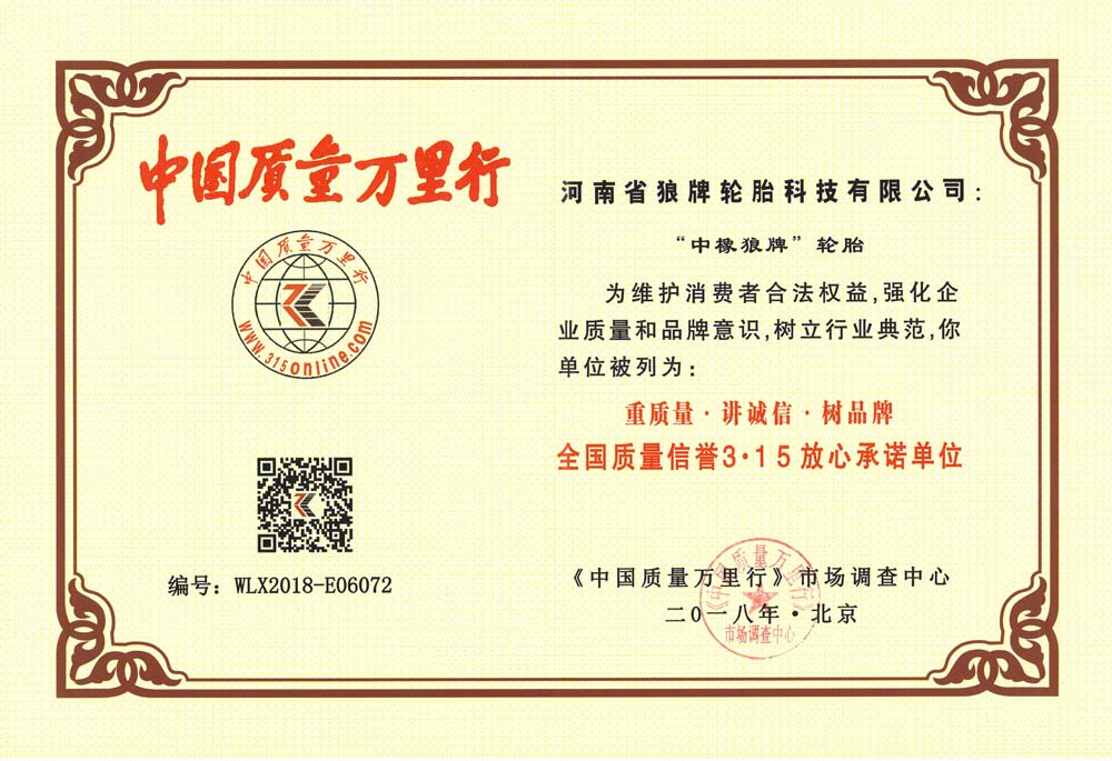 中橡狼牌輪胎品牌榮譽(yù)
